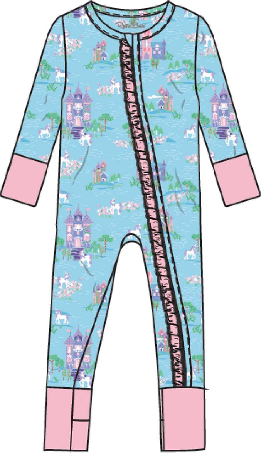 SoftSnooze™ Baby Girls Bamboo Viscose Once Upon a Castle Convertible Ruffle One Piece Footie Pajama