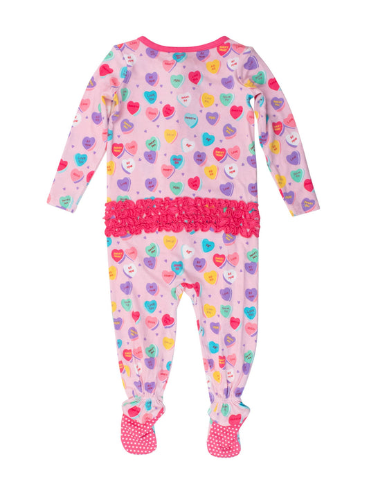 Baby Girls Be My Valentine Bamboo Viscose Footed Ruffle One Piece Pajama