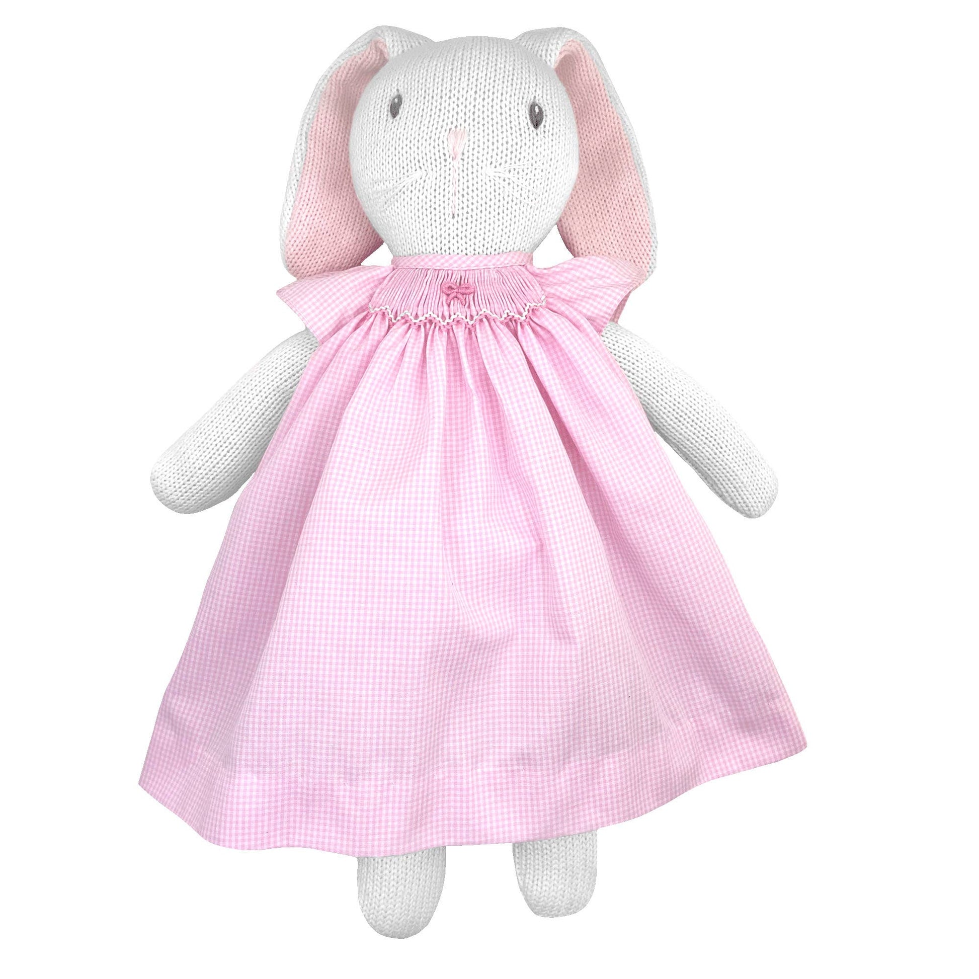 This hand-knit bunny doll comes with an adorable pastel pink gingham check dress that can easily match to any holiday or Easter outfit.
