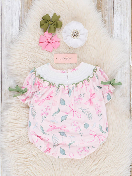 Sold outPink & Green Smocked Bows Bubble