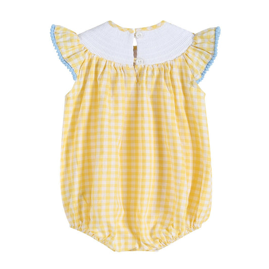 Yellow Gingham Lemon Smocked Flutter Romper