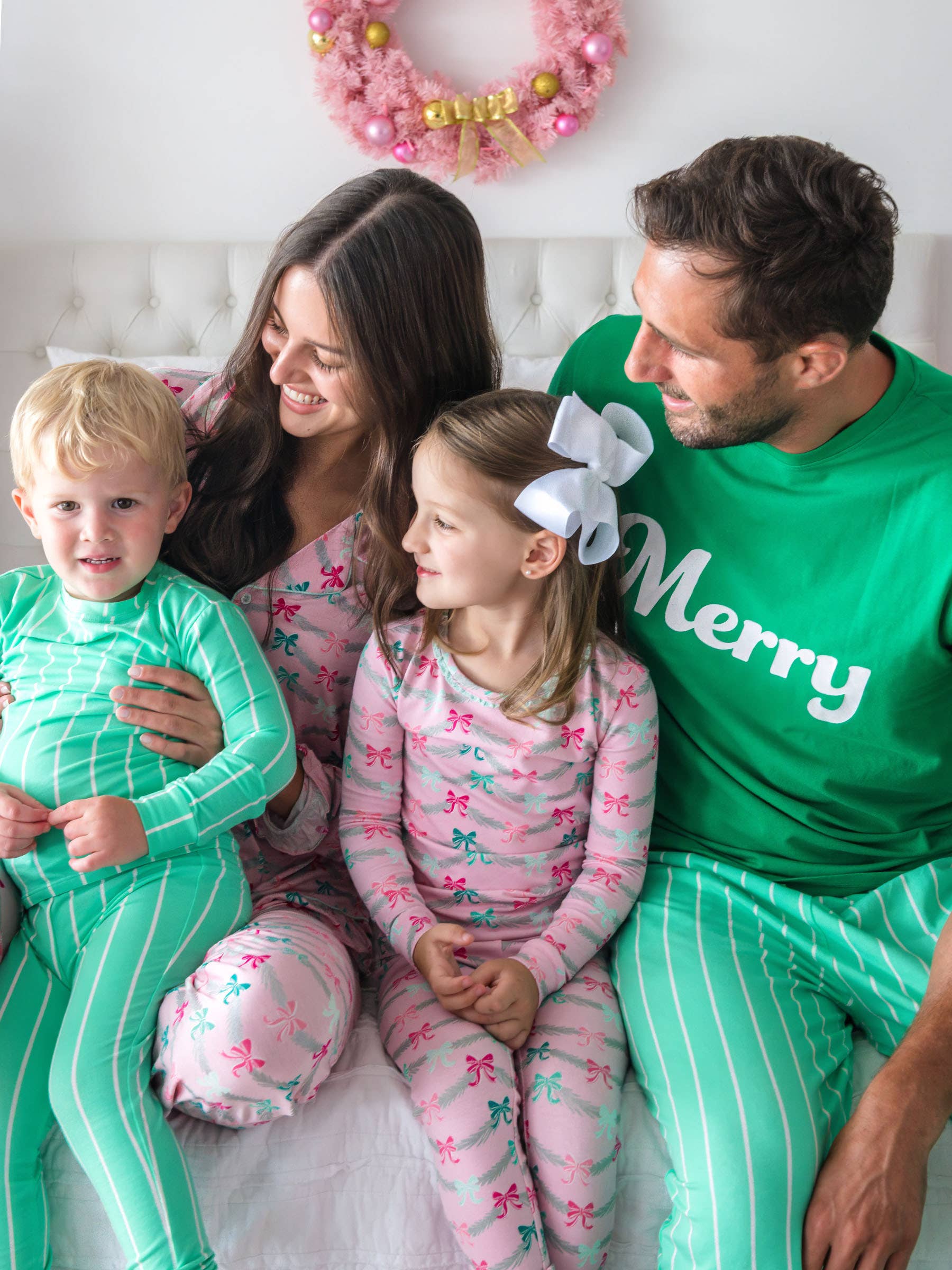 This long sleeve sleep set is soft and cozy, with precious ruffles that will bring a smile to your face. A dainty ruffle adorns the neckline of the pajama top, and classic rear ruffles add the finishing touch. Tagless for added comfort. Made from our premium SoftSnooze™ cotton modal blend, these jammies are super cozy and soft. The snuggly modal fabric is pill-resistant and great for embroidery or personalization! Decorated with lots of tinsel and bows, this sweet pattern is sure to get you in the holiday spirit! The silver tinsel sparkles in the light for extra magic. Pairs well with Emerald Green, Pink, Hot Pink. Care Instructions: Machine wash cold; only non-chlorine bleach when needed; tumble dry low // Modal is a delicate fabric. To prevent damage and to extend the life of the garment, use laundry bag in washing machine and dryer. Fabric Content: 54% Cotton, 39% Modal, 7% Spandex Reference Code: G4632